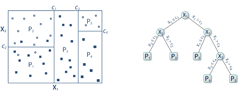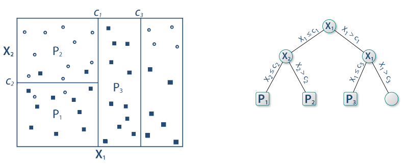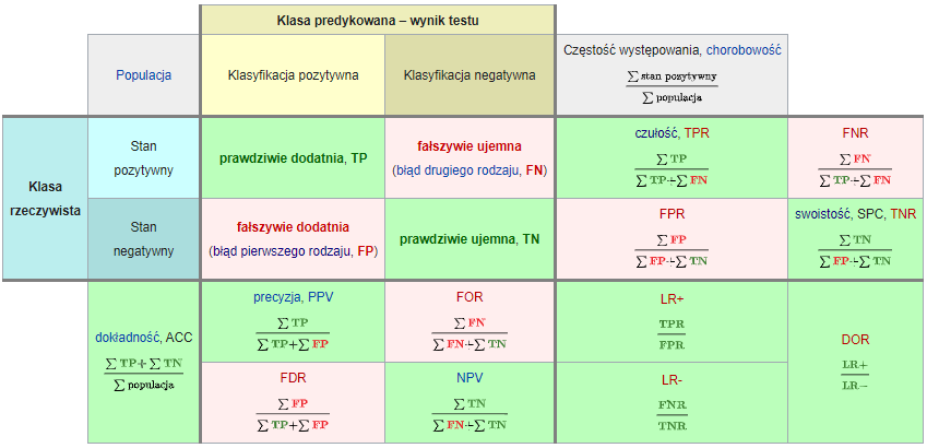 i analizy danych ] .subtitle[ ## Klasyfikacja ] .author[ ### © Łukasz Wawrowski ] --- # Podział metod Uczenie nadzorowane - końcowy wynik jest znany - klasyfikacja - regresja Uczenie nienadzorowane - końcowy wynik nie jest znany - grupowanie obiektów - grupowanie cech --- # Podział metod  --- # Klasyfikacja - dane tabelaryczne - obrazy - teksty --- # Klasyfikacja - binarna (binary) - tylko dwa warianty: zachorowanie, spłata kredytu - wieloklasowa (multiclass) - typ klienta - wieloetykietowa (multilabel) - gatunek filmu [A visual introduction to machine learning](http://www.r2d3.us/visual-intro-to-machine-learning-part-1/) [Model Tuning and the Bias-Variance Tradeoff](http://www.r2d3.us/visual-intro-to-machine-learning-part-2/) --- # Algorytmy - white-box: regresja logistyczna, drzewa decyzyjne - black-box: sieci neuronowe, XGBoost Niektóre z metod opierają się na losowości i wyniki mogą się wtedy nieznacznie różnić pomiędzy uruchomieniami. Aby tego uniknąć można zastosować ziarno generatora. --- # Złożoność modelu  --- # Złożoność modelu  --- # Drzewa decyzyjne  [Źródło](https://github.com/WhyR2019/presentations/blob/master/Keynotes/Marvin_Wright_RF.pdf) --- # Drzewa decyzyjne  --- # Drzewa decyzyjne  --- # Drzewa decyzyjne  --- # Drzewa decyzyjne  --- # Drzewa decyzyjne  --- # Drzewa decyzyjne  --- # Macierz pomyłek (confusion matrix)  [Źródło](https://pl.wikipedia.org/wiki/Tablica_pomy%C5%82ek) --- # Miary Wyniki klasyfikacji można oceniać za pomocą wielu miar: - Dokładność (accuracy): % poprawnie zaklasyfikowanych - Precyzja (precison): % poprawnie rozpoznanych przypadków pozytywnych TP/(TP+FP) - Czułość (sensitivity/recall): % prawdziwie pozytywnych TP/(TP+FN) - Swoistość (specificity): % prawdziwie negatywnych TN/(TN+FP) - F1: średnia harmoniczna z czułości i precyzji 2TP/(2TP+FP+FN) --- # Krzywa ROC Krzywa ROC to jeden ze sposobów wizualizacji jakości klasyfikacji, pokazujący zależności wskaźników TPR (True Positive Rate) oraz FPR (False Positive Rate). 1. obliczamy prawdopodobieństwo klasyfikacji do danej klasy 2. testujemy wiele progów prawdopodobieństwa (domyślnie 0,5) 3. dla każdego progu obliczamy macierz pomyłek Pole pod krzywą ROC - AUC (Area under curve) jest jedną z miar jakości klasyfikacji. AUC = 1 (klasyfikator idealny), AUC = 0.5 (klasyfikator losowy), AUC < 0.5 (klasyfikator gorszy od losowego). [Źródło](https://algolytics.pl/tutorial-jak-ocenic-jakosc-i-poprawnosc-modeli-klasyfikacyjnych-czesc-4-krzywa-roc/) --- # SVM - maszyna wektorów nośnych  --- # SVM - maszyna wektorów nośnych  --- # Lasy losowe 1. Weź zbiór danych 2. Wybierz `\(n\)` drzew do zbudowania 3. Dla wartości od `\(i = 1\)` do `\(n\)`: 4. | Wylosuj próbę bootstrapową 5. | Stwórz drzewo na podstawie wylosowanych danych 6. | Dla każdego podziału 7. | | Wylosuj `\(m\)` zmiennych ze wszystkich `\(p\)` zmiennych 8. | | Wybierz najlepszą zmienną do podziału 9. | | Stwórz podział 10. | Zakończ proces budowy drzewa kiedy kryterium jest optymalne 11. Zwróć zbiór wynikowych drzew [Źródło](https://bradleyboehmke.github.io/HOML/random-forest.html) --- # Boosting gradientowy  --- # Walidacja krzyżowa Technika oceny modelu, aby sprawdzić jego stabilność i generalizację na różnych podzbiorach danych. <img src="img/cv.png" height="500px"> [Źródło](https://ubc-dsci.github.io/introduction-to-datascience/) --- # Tuning hiperparametrów Domyślne parametry modelu nie muszą dawać najlepszych rezultatów. W celu ulepszenia klasyfikatora stosuje się metody przeszukiwania parametrów. - learning rate - max depth - number of trees - sample rate Można przeszukiwać całą przestrzeń parametrów (intensywne obliczeniowo) albo losowo. --- class: inverse # Zadanie